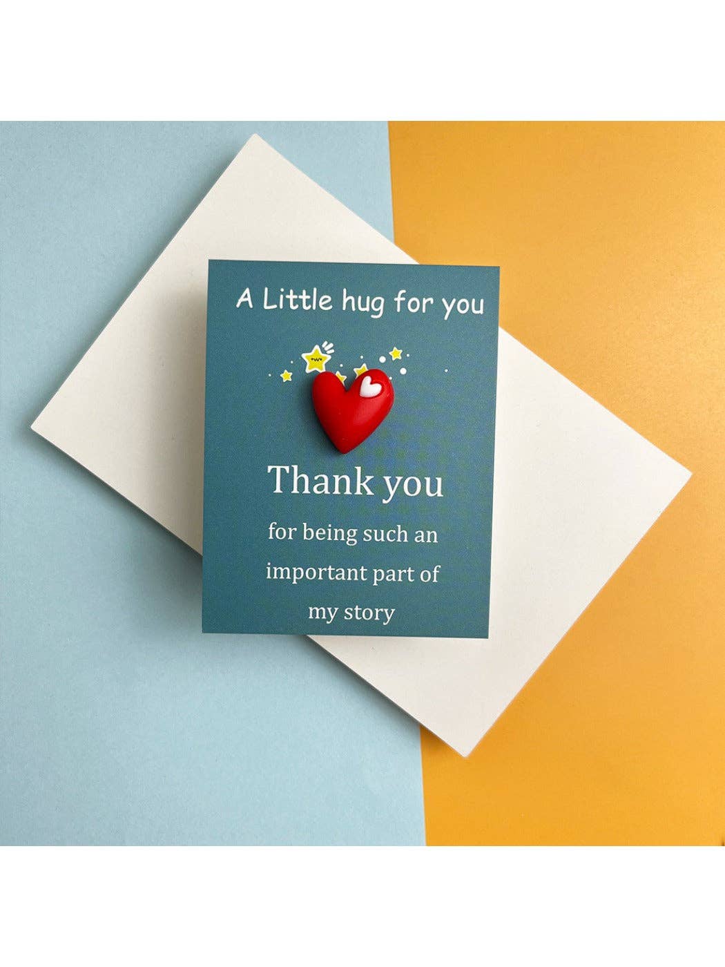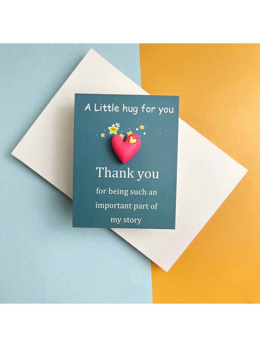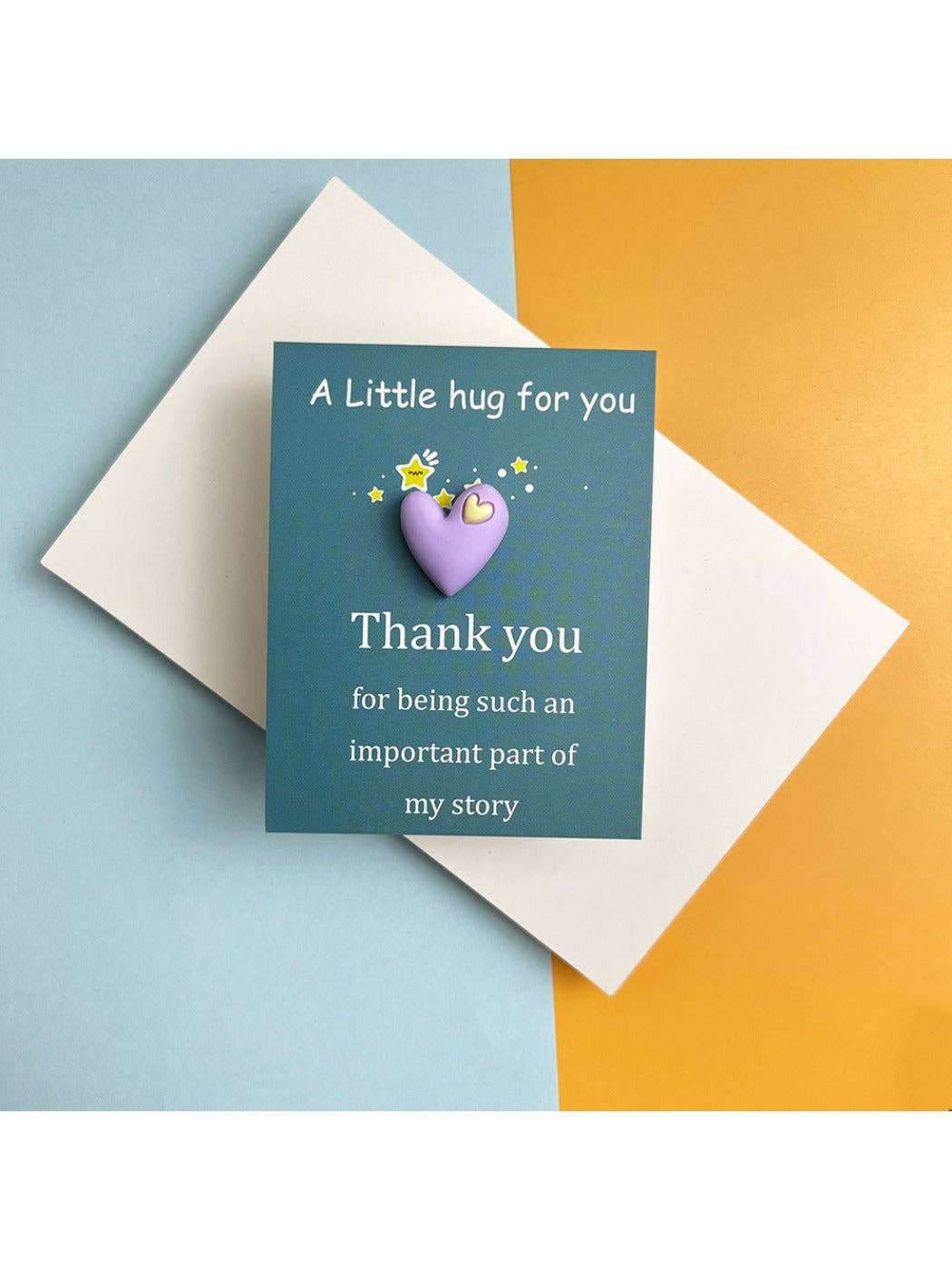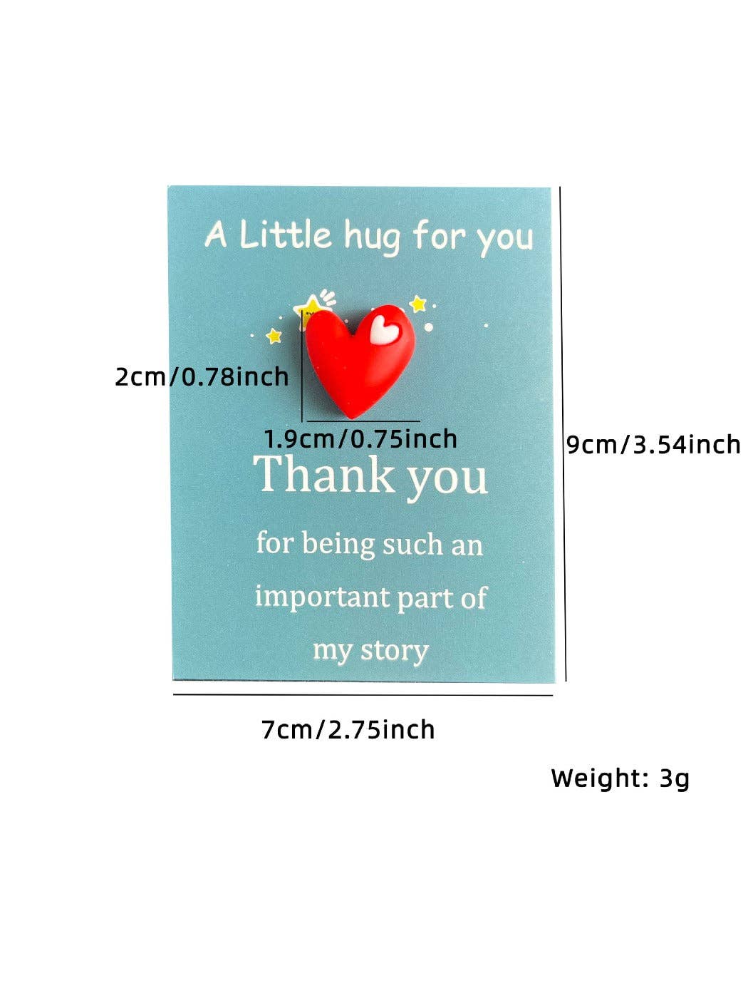 What Is a Pocket Hug? A frosted resin heart keepsake that shares a small, tangible reminder of care. Use it as a gift tag, decorative charm, or jewelry projects. Size & materials Dimensions: 9 cm × 7 cm Weight: 3 g Material: plastic/resin with a frosted finish Color options Blue, rose pink, purple, pink, yellow, orange, red. Ways to use Attach to greeting cards or gift bags Add as a charm Features Lightweight and durable Craft-ready for makers and small shops Care Wipe gently with a soft, dry cloth. Avoid harsh cleaners. FAQ What is a pocket hug token? A small heart-shaped keepsake you can carry or add to gifts to show you care. What size and weight is this item? 9 cm × 7 cm; approximately 3 g. What is it made of? Plastic/resin with a frosted finish.