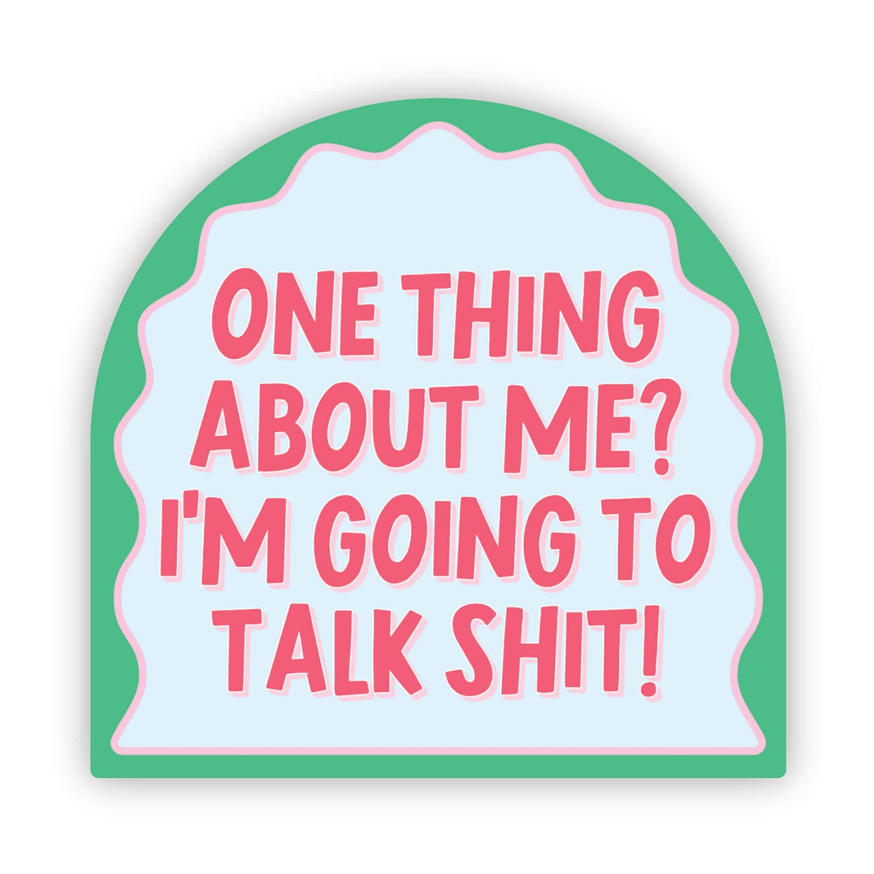 Buckle up, because we've got a sticker that's not afraid to spill the tea! Introducing our "One Thing About Me? I'm Going to Talk Shit!" sticker. With its bold typography and humorous tone, this sticker announces your unapologetic wit to the world. Crafted with high-quality materials, this sticker is built to last. It's dishwasher safe and waterproof, ensuring it stays intact through the juiciest conversations. Stick it on your laptop, notebook, or any surface that needs a touch of spicy personality. This sticker is a hilarious declaration of your outspoken nature and fearless attitude. Whether you're engaging in playful banter or expressing your unfiltered opinions, it's a surefire conversation starter.