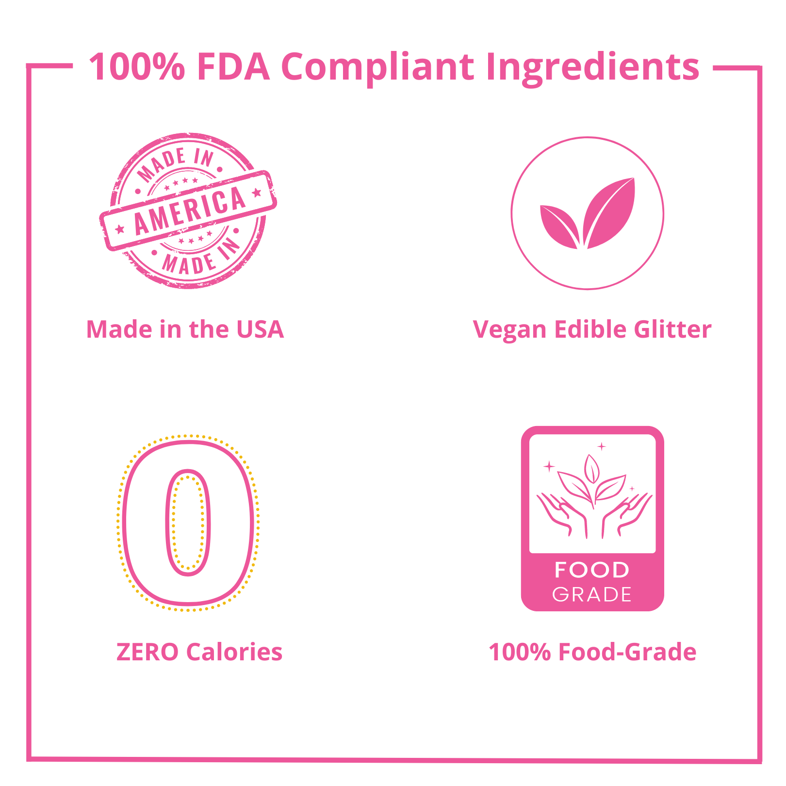 * Innovative Glitter Drop Design: Experience the magic of Glitter Faced's mess-free glitter drop experience, transforming your cocktails and drinks into sparkling wonders. * Versatile & Aesthetic Appeal: Not just for cocktails, these glitter elixir drops can be used in non-alcoholic beverages, adding a fun twist to any party. Our colors offer a sophisticated shine, perfect for creating Instagram-worthy drinks that sparkle and delight. * Food-Grade & Safe: Crafted with safety in mind, our edible glitter is entirely food-grade, ensuring a safe, tasteless, and textureless addition to your drinks. Enjoy the sparkle without altering the flavor of your favorite beverages.