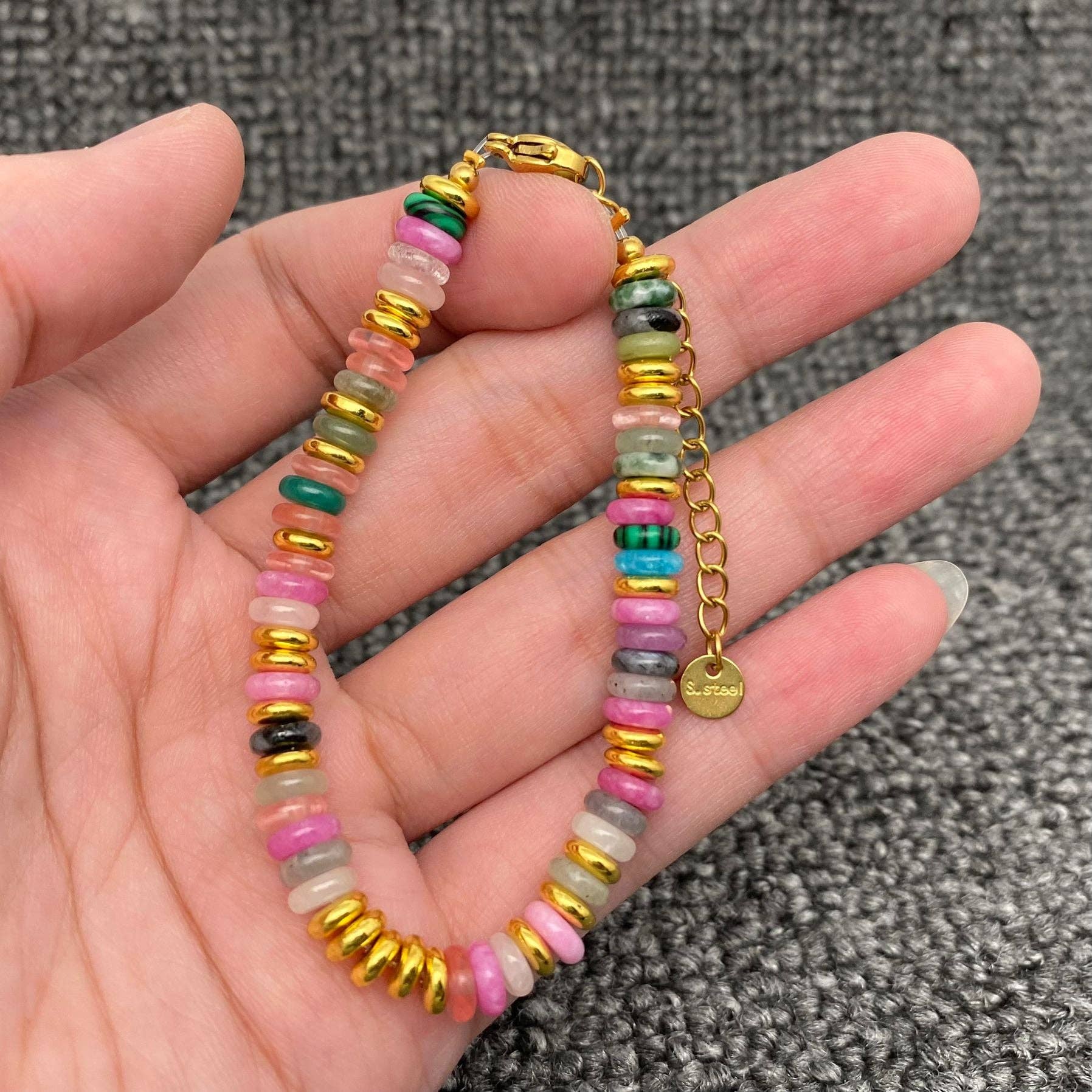 Type: Bracelets Material: Stainless steel ,Stone ,18K gold plated Size of beads : 6mm Length of chain : 160mm 50mm Process: Vacuum electroplating and manual polishing,Non - tarnish Surface : High Polish ★Made of high quality stainless steel,Lead-free,Harmless to Human Body. ★Perfect jewelry gifts
