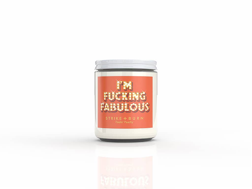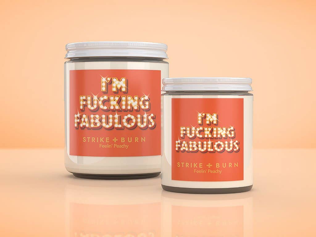 I'm Fucking Fabulous Candle Fragrance: Feelin' Peachy We know you don't need anyone's validation—but indulge us for a moment: you are Fucking Fabulous. And this candle? It's the cherry (or should we say, peach) on top of your fabulosity. Feelin' Peachy wraps you in a warm, uplifting hug with its sweet, fruity aroma—perfect for boosting your mood and reminding you just how amazing you truly are. Perfect confidence boost gift for birthdays, self-care days, or anyone who needs a fabulous reminder. Fragrance Notes: Feelin' Peachy Top Note: Fresh peach – bright, juicy, and uplifting with sweet fruit vibes. Middle Note: Sweet nectar – warm, comforting, and mood-boosting with fruity depth. Base Note: Peachy sweetness – feel-good, fabulous energy that lifts your spirits. What Makes Us Great: •USA-farmed, sustainably sourced coconut-soy wax — always paraffin-free. •Prop 65–compliant fragrances & essential oils — clean, safe, and smell amazing. •No parabens, phthalates, or BPA — ever. •Eco-friendly cotton wicks —