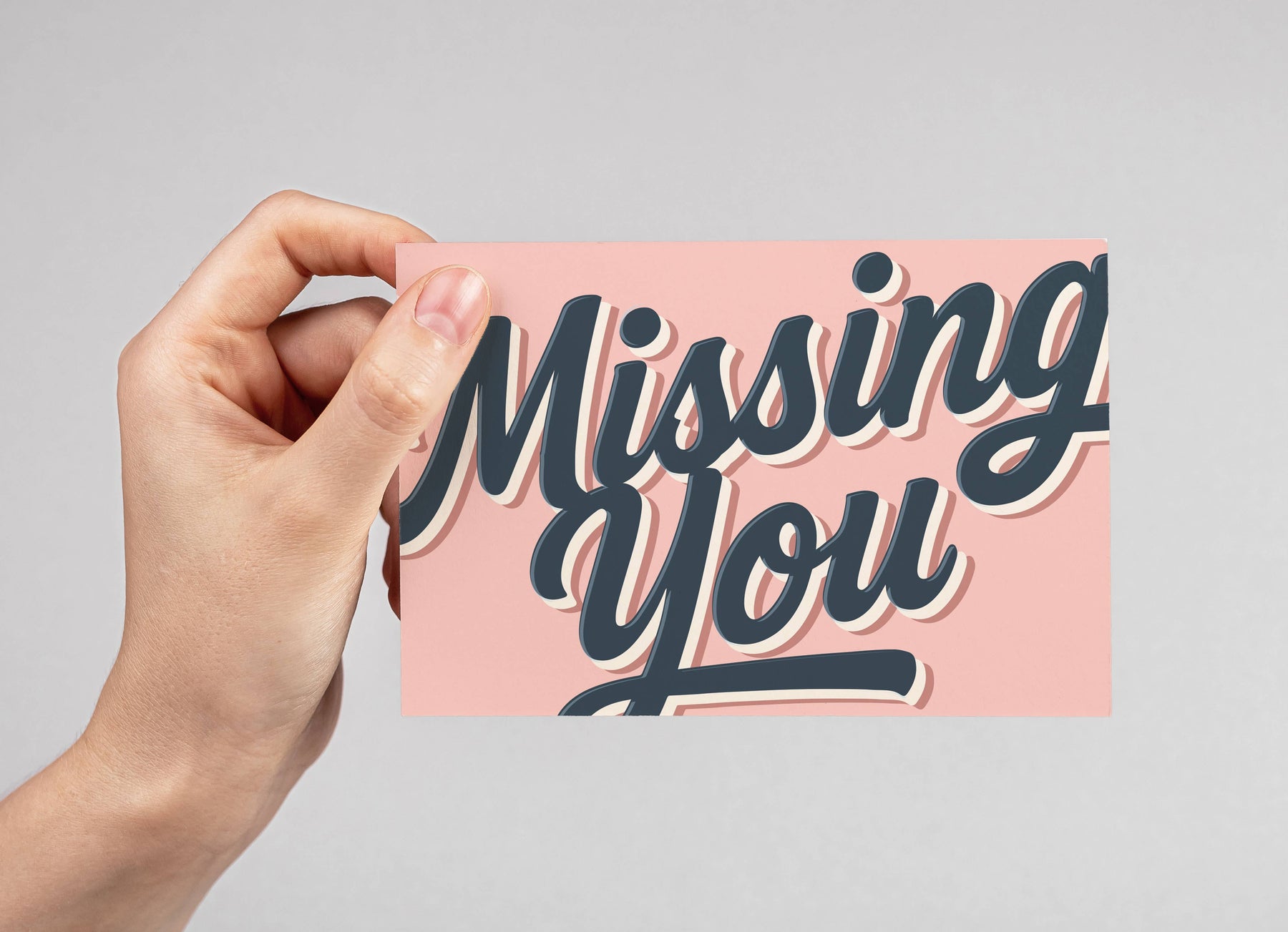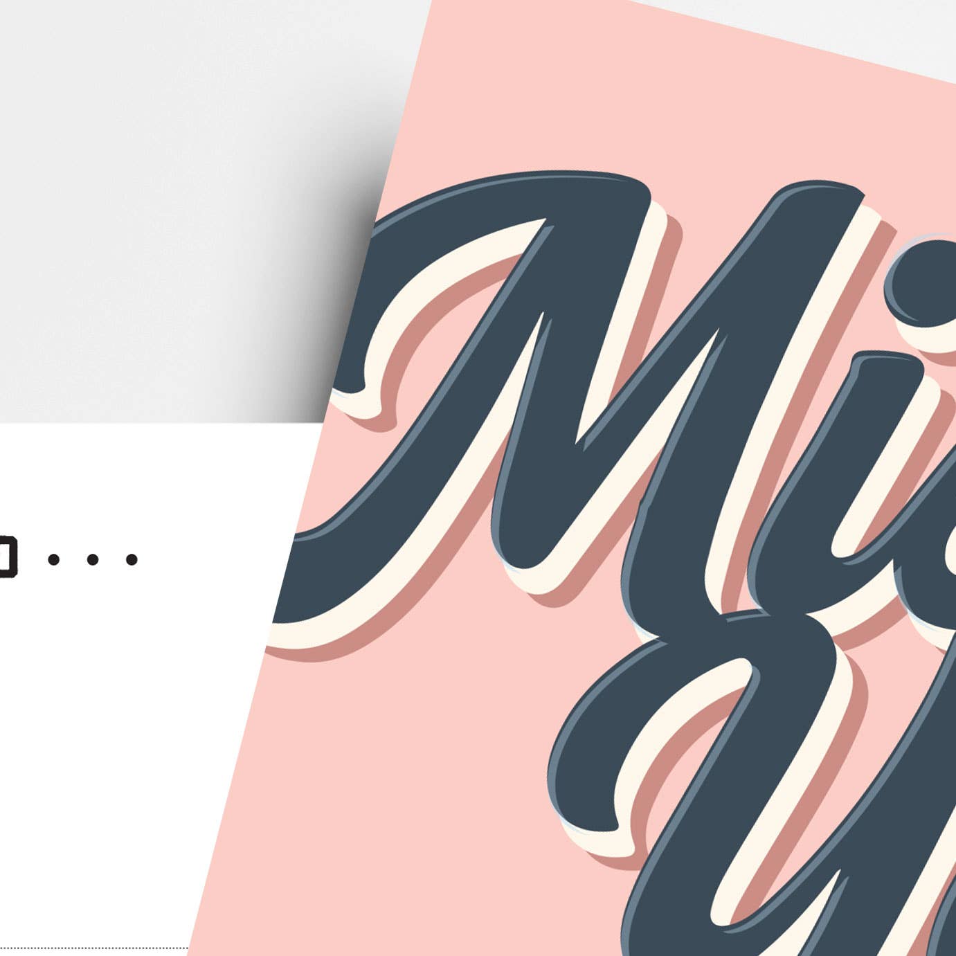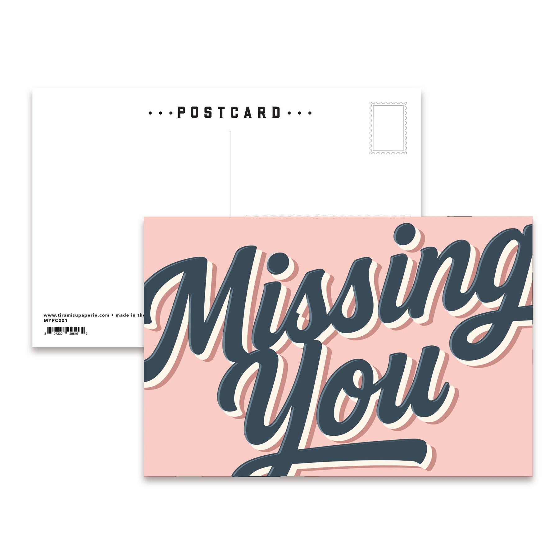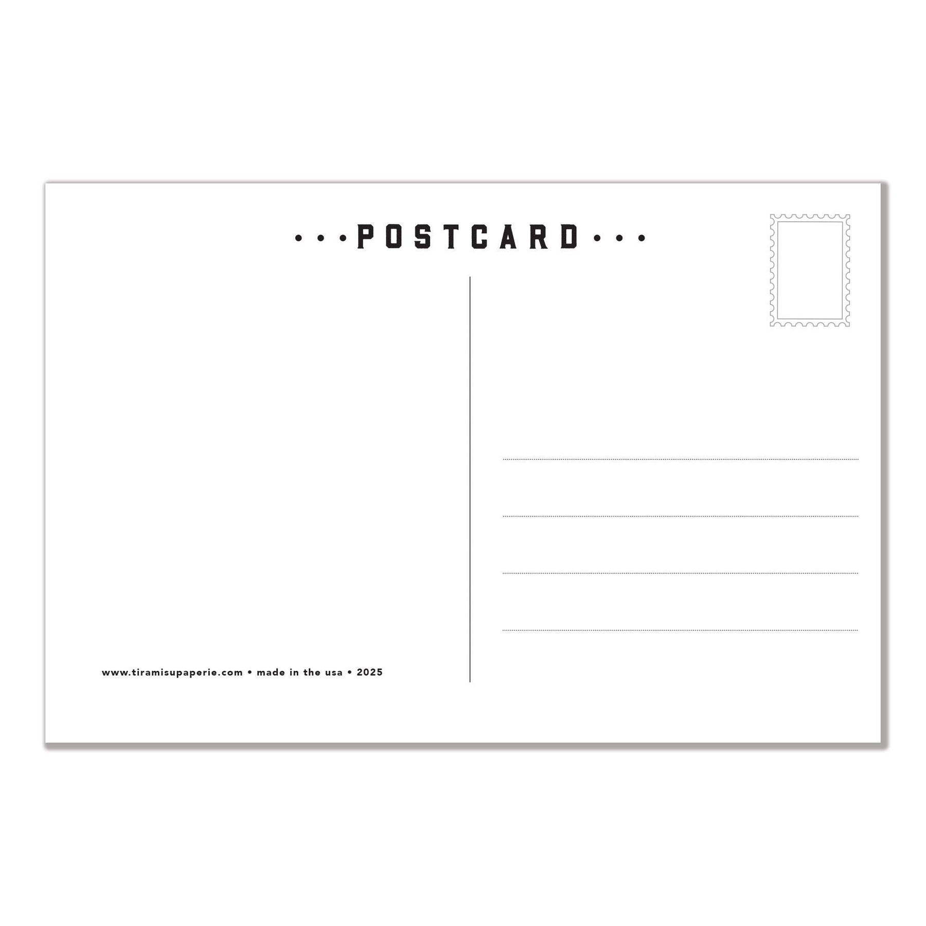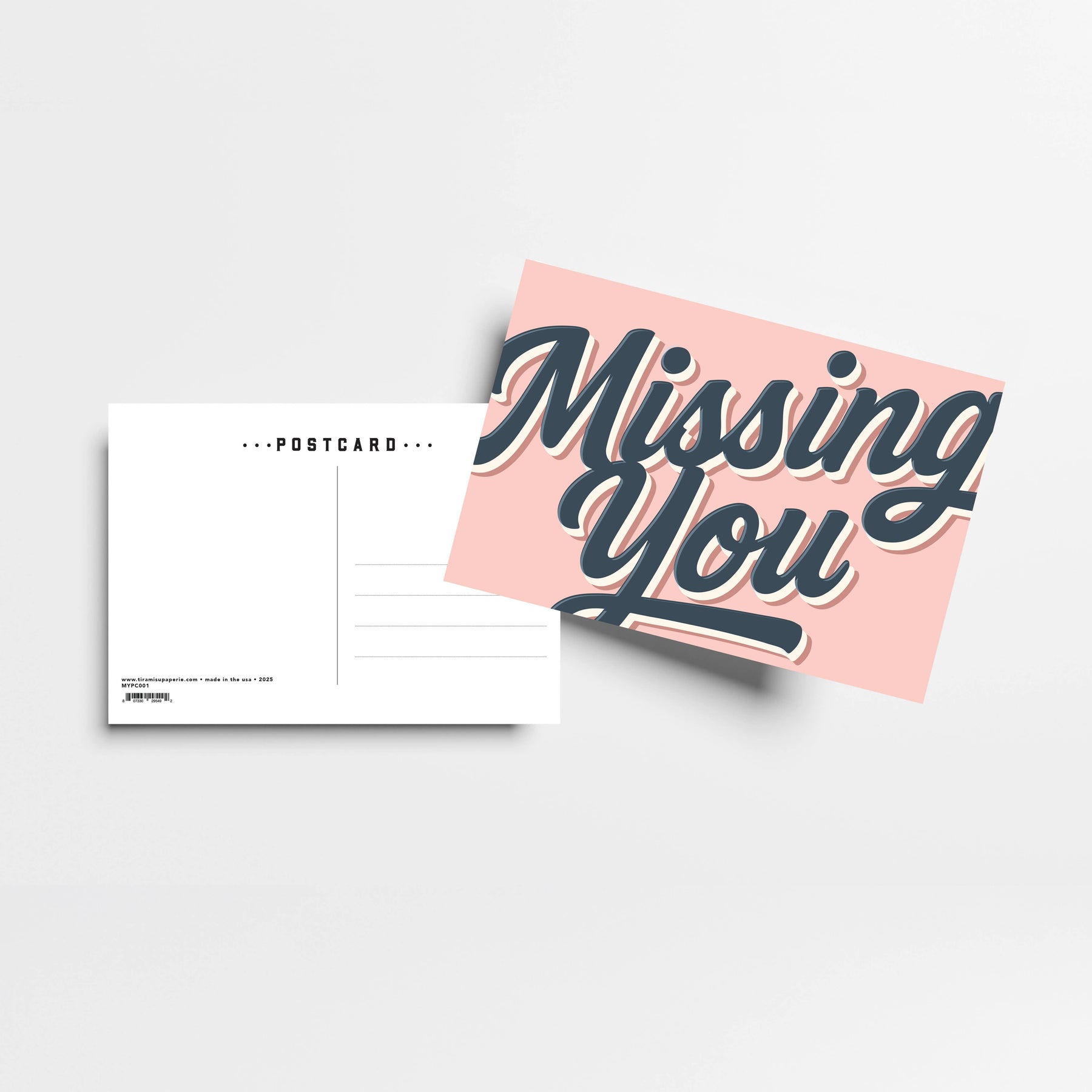Let them know they’re on your mind—no envelope required. This sweet 4x6 postcard features retro-style navy script on a pink background and is perfect for sending a little love from afar. • 4" x 6" standard size postcard • Printed on premium, thick cardstock • Blank back for note, address & stamp • MOQ: 6 Made in the USA