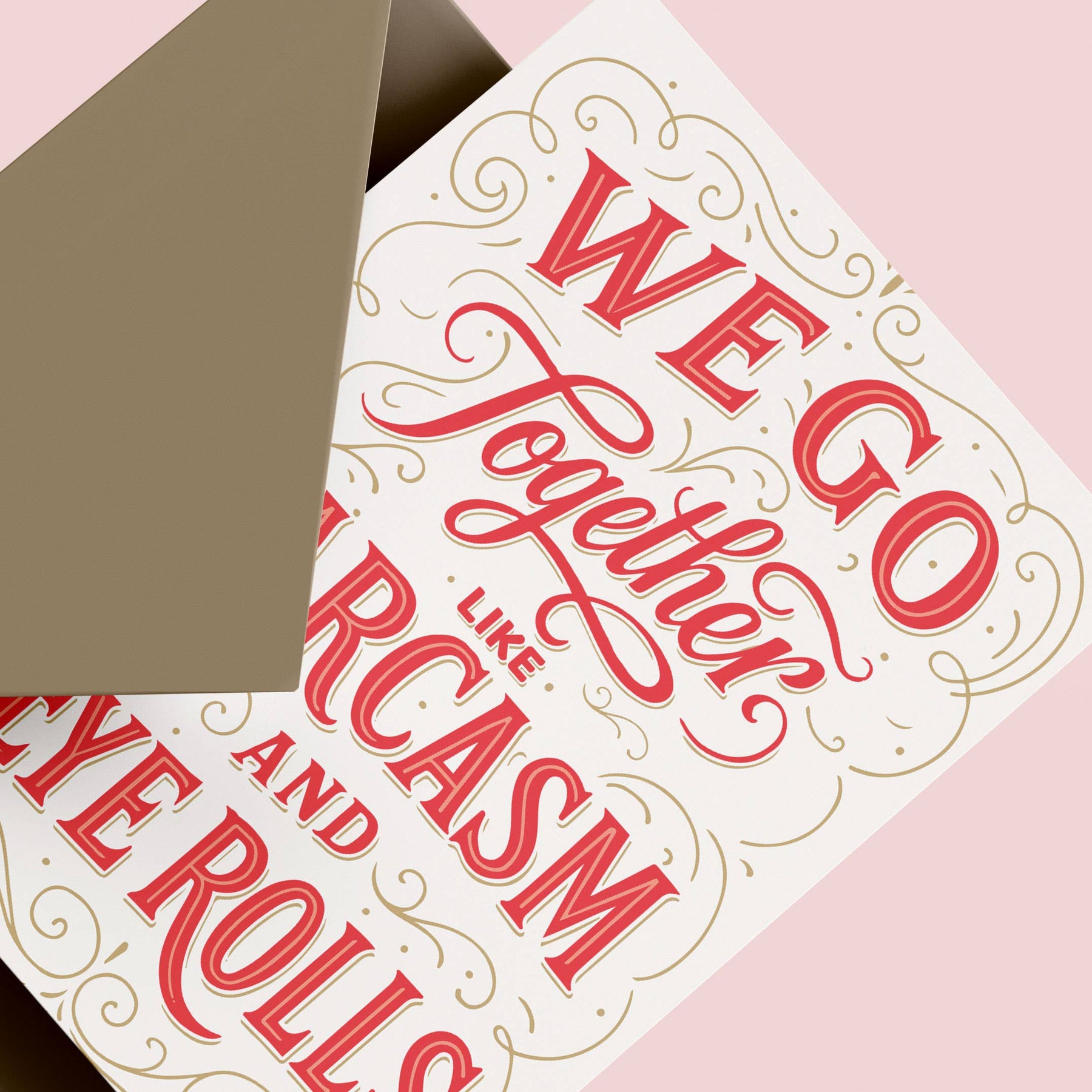 [{"id":47290120110299,"title":"Default Title","option1":"Default Title","option2":null,"option3":null,"sku":"NC00393","requires_shipping":true,"taxable":true,"featured_image":null,"available":true,"name":"We Go Together Like Sarcasm \u0026 Eye Rolls","public_title":null,"options":["Default Title"],"price":600,"weight":14,"compare_at_price":null,"inventory_management":"shopify","barcode":"807330295553","requires_selling_plan":false,"selling_plan_allocations":[]}]