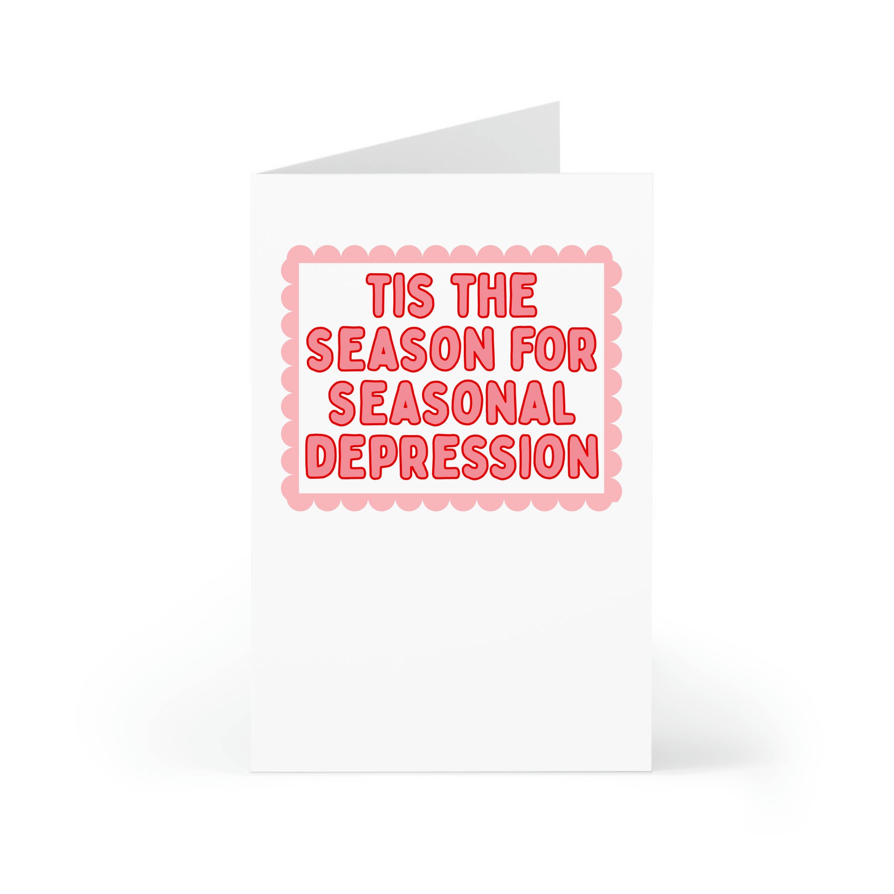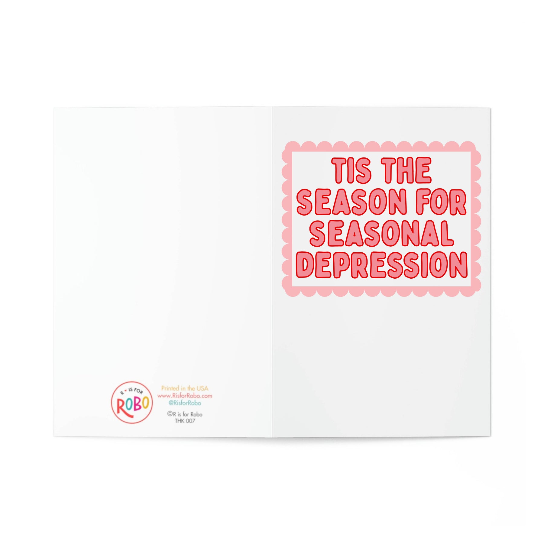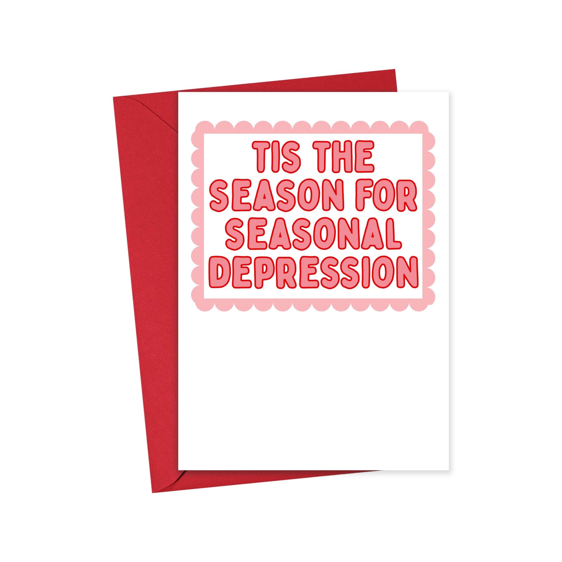 Tis the Season for Seasonal Depression Make the season bright—and hilarious—with this funny Christmas card! Featuring a witty message and a festive design, it’s perfect for spreading holiday cheer with a touch of humor. Whether for friends, family, or coworkers, this card is guaranteed to bring smiles (and maybe a few chuckles).