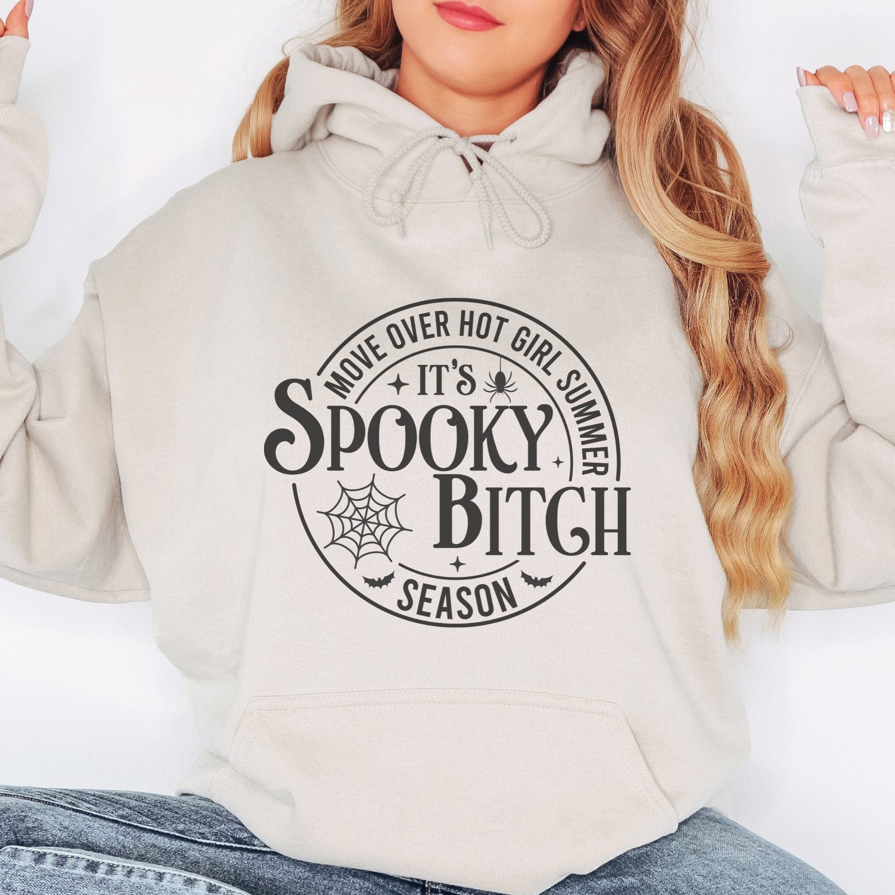 Move Over Hot Girl Spooky Halloween Graphic Hoodie GRAPHIC PROCESS: Our hoodies are printed on super soft Gildan brand sweatshirts made of 50/50 Cotton/Poly heavy blend material using the sublimation print process in which the ink is dyed into the fabric fibers, meaning that the graphic will not flake or peel away. Ink colors are MOST vibrant on light colored sweatshirts. SIZING: Please refer to our size chart for sizing. Small fits sizes 4-8 Medium fits sizes 10-12 Large fits sizes 12-14 XLarge fits sizes 16-18 2XLarge fits sizes 20-22 Details: • 50% cotton, 50% polyester • Pre-shrunk • Air-jet spun yarn with a soft feel and reduced pilling • Double-lined hood with color-matched drawcord • Double-needle stitching at shoulders, armholes, neck, waistband and cuffs • Double-needle pouch pocket for added reinforcement • Sizes available in S-2XL plus size CARE: -Wash inside out with like colors. -Tumble dry low or hang to dry. -No bleach/fabric softener. Halloween Sweatshirts Scary