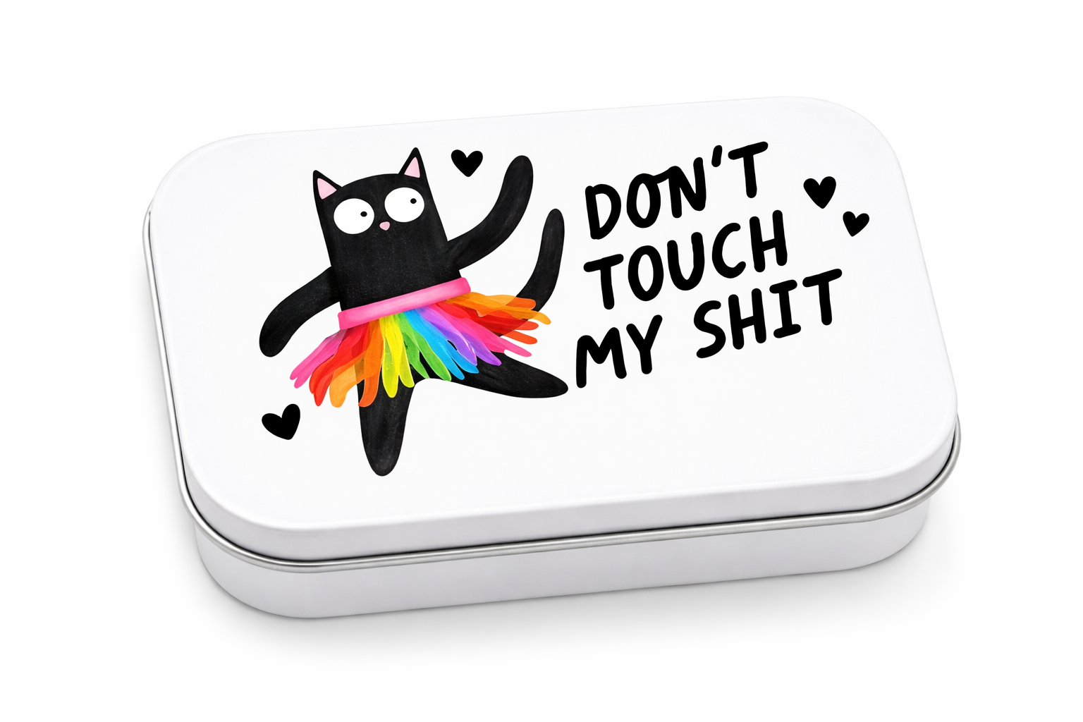 Novelty mint or trinket tin box for purse or pocket. Design features hi-gloss coasting 3D embossed feel, colors will not fade, is waterproof, hand washable. Perfect for gifting. Compact size makes them perfect pill boxes, earrings, or jewelry storage, etc.