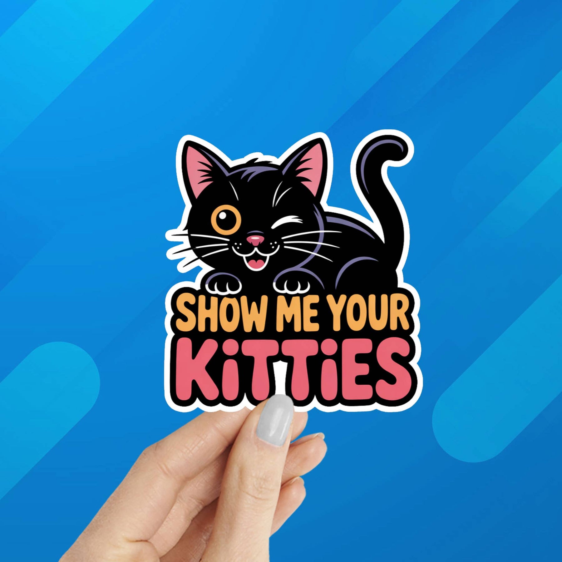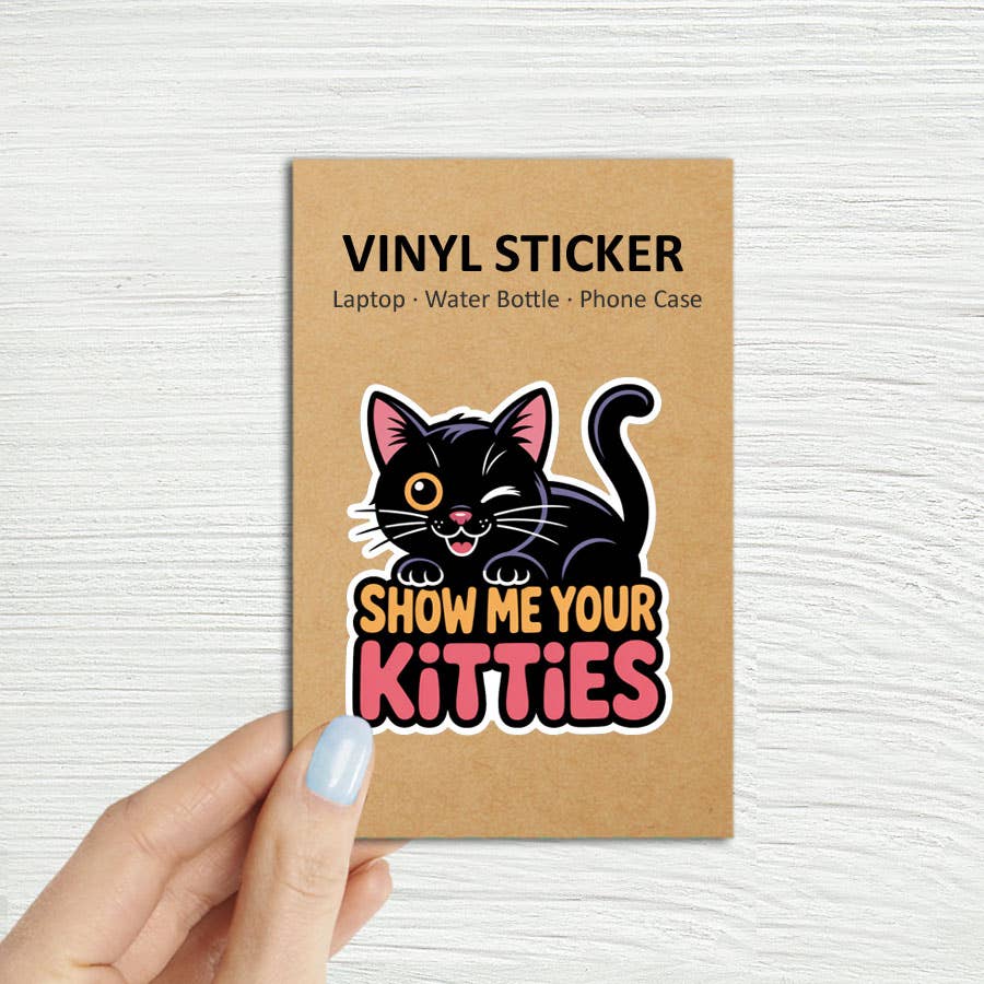Show Me Your Kitties cat laptop sticker measures 2-3/4" wide x 3" high, and has a matte finish. The sticker is waterproof so you can put it on your water bottle (top rack only). Vinyl diecut stickers are great to put on a laptop, water bottle, phone or Kindle case, journal, tumbler, or collect and trade with your friends. Easy to remove. “Show Me Your Kitties” laptop stickers are a fun, cheeky way for cat lovers to personalize their tech with personality. These waterproof vinyl decals feature bold, eye-catching designs that stand out on laptops, tablets, water bottles, journals, and more. Perfect for pet owners, cat-themed gift shops, or anyone who loves playful humor, “Show Me Your Kitties” stickers make an easy impulse buy and a great conversation starter. Durable, long-lasting, and ready for retail display, they’re an ideal way to add a little feline attitude to your everyday gear. Book stickers, waterproof stickers, bookish gifts, cat stickers, cat gifts, stockings stuffers, book lover gifts, water bott