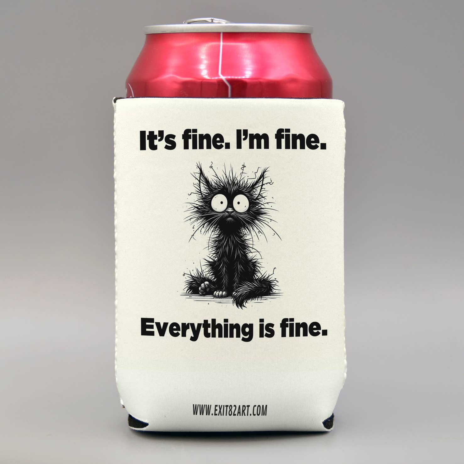 "It's fine. I'm fine. Everything is fine." Keep your drinks chill and your vibe cooler with a one-of-a-kind drink coozies. Each piece features original, eye-catching artwork that ranges from clever pop culture references to quirky retro designs — all printed in vibrant color on durable neoprene. Whether you're sipping at a backyard BBQ or selling out at your next craft market, these coozies are conversation starters.