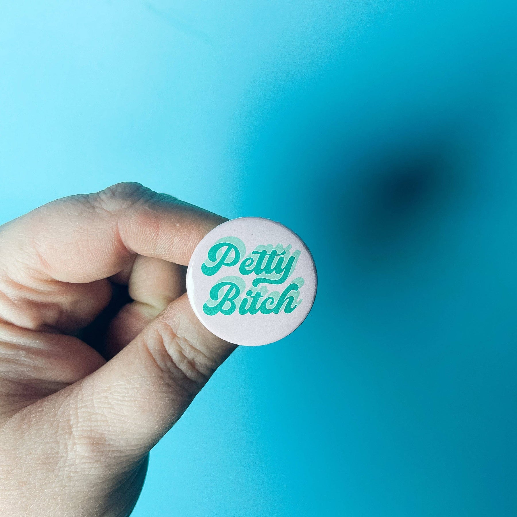 This button pin is the perfect way to express your petty side! It features a fun and humorous design in vibrant colors that will make a statement. This pin is made with high-quality materials and has a strong, secure pin back to ensure it stays in place. Wear it on your favorite jacket, hat, or bag and show off your petty side. SIZE: 1.25" diameter NOTE: Monitors differ meaning the colors seen on screen may vary or appear slightly different in person.