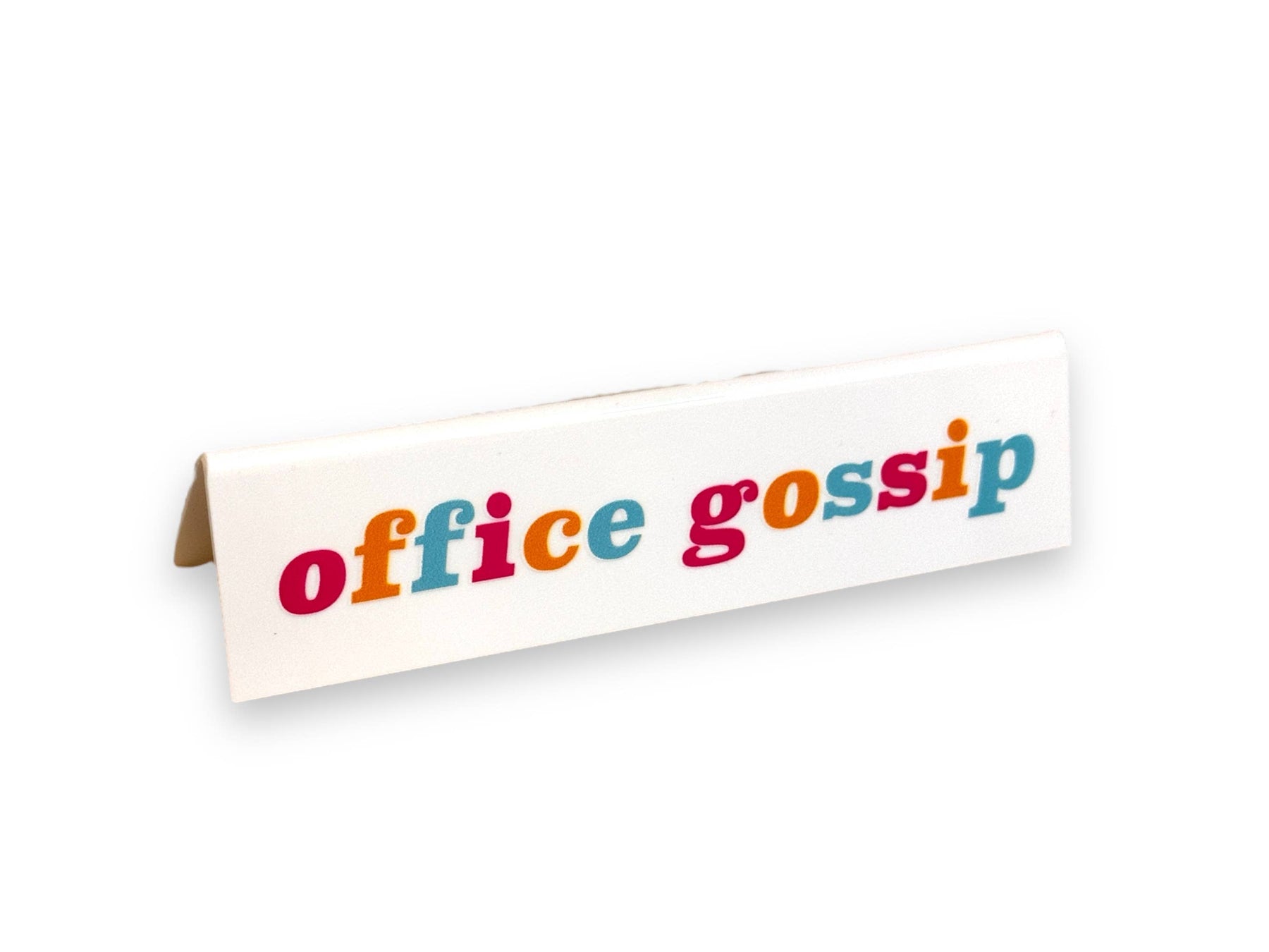 Express yourself at work or bring some fun to a colleague or friend's desk with a quotable desk sign. Remind everyone that the office rumor mill begins and ends at your desk! • White acrylic, tent-shaped sign • Measures 5.75" x 1.25"
